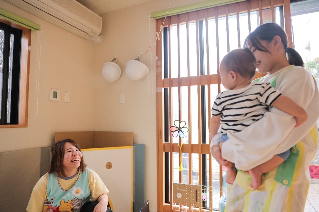 毎日、子どもたちにたっぷりの愛情を注ぐ保育士さん。ゆたか保育園の理念『愛情あふれる保育』が日々の保育に息づいている。
