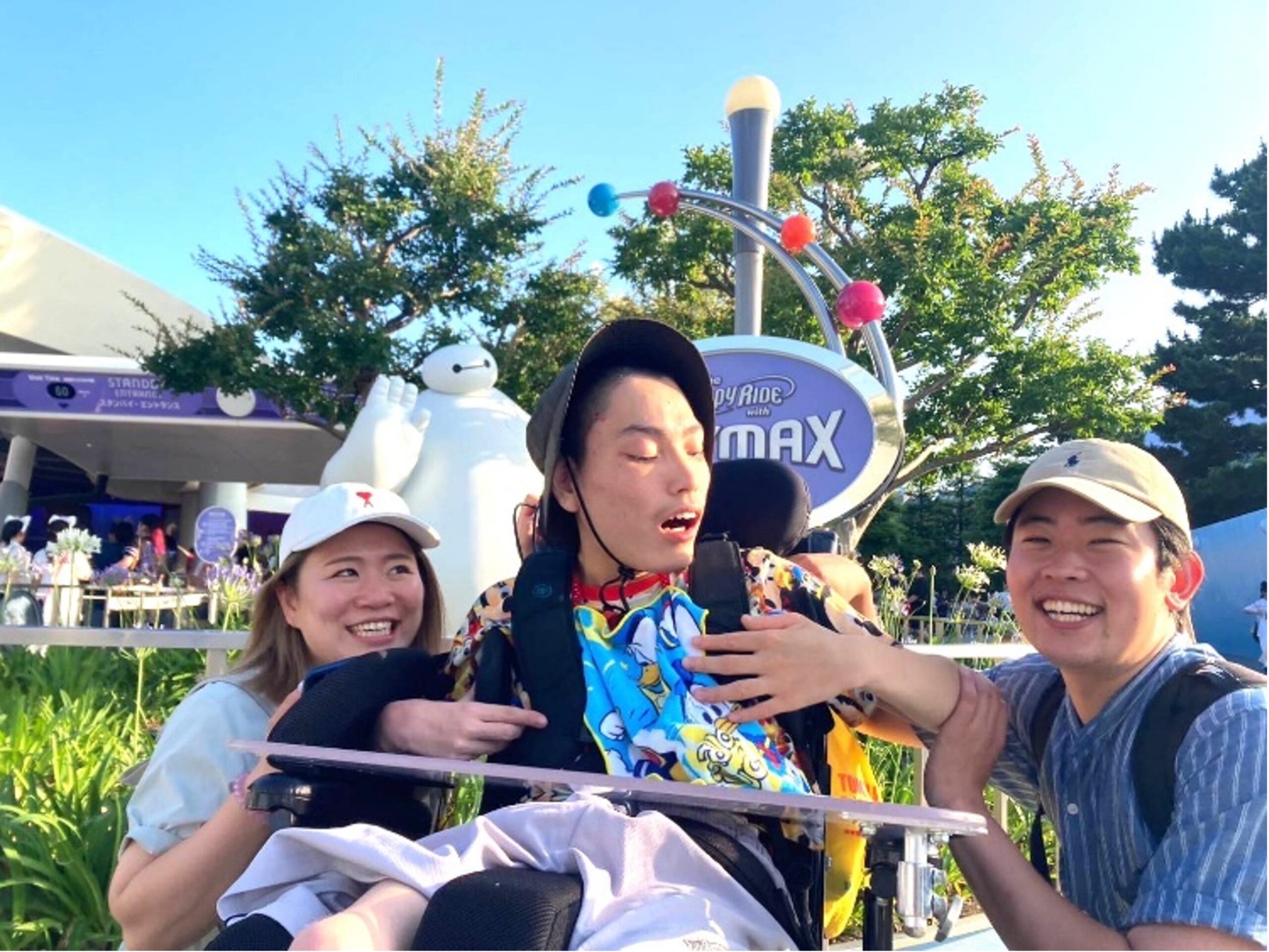 外出支援で訪れたディズニーランド。安全に配慮しながら、楽しい思い出を作ってもらえるようサポートしている。